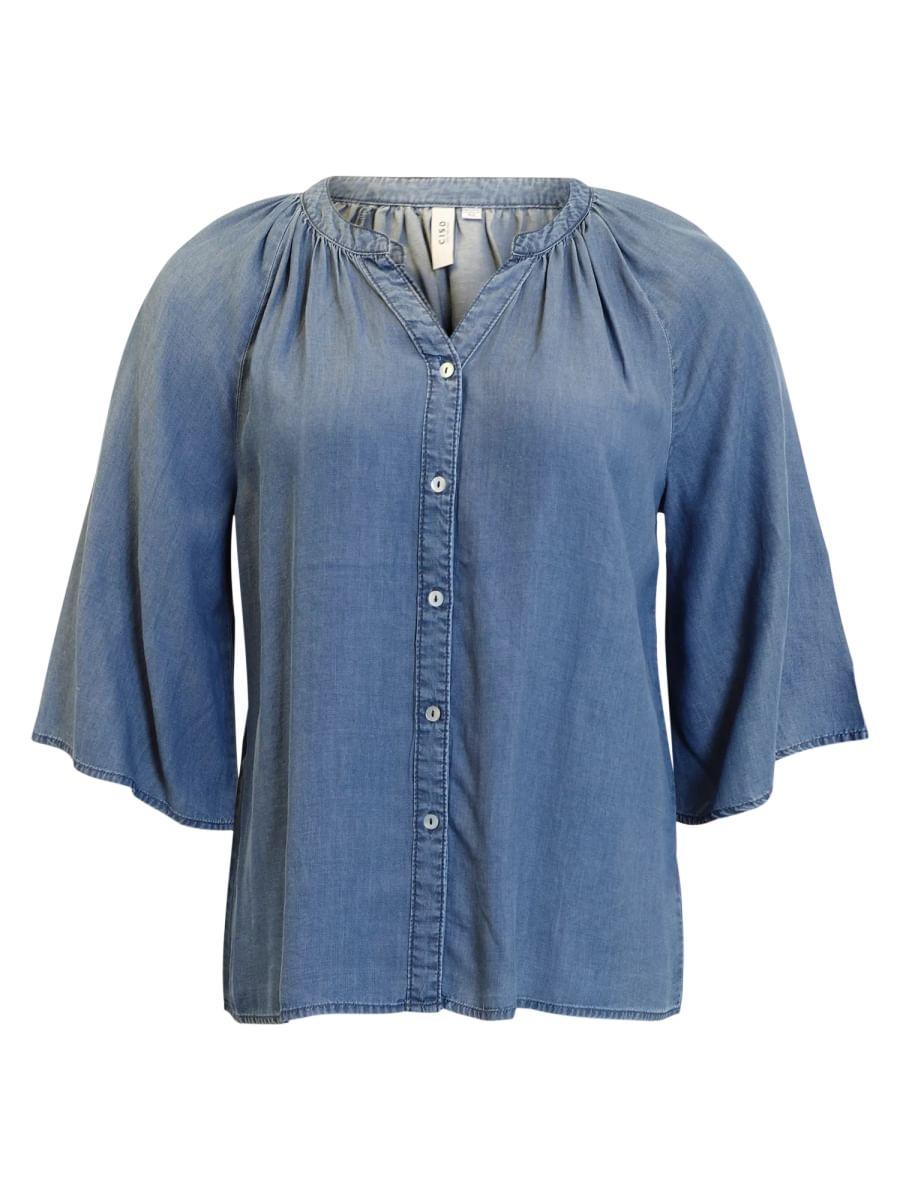 Deilig bluse fra Ciso. Den har vide 3/4-ermer, rett passform, og V-hals med knapper ned hele fremsiden. Blusen er luftig og lett, og utrolig komfortabel å gå med.
