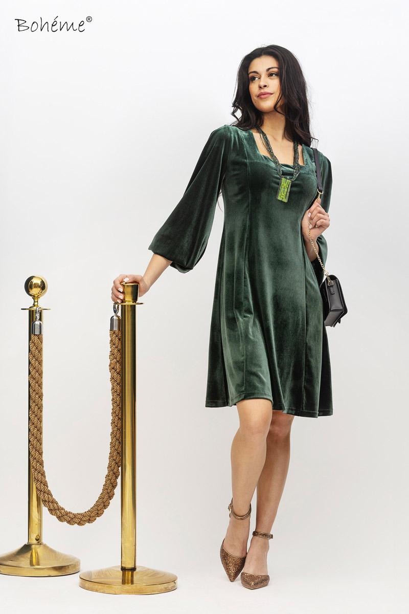 Denne nydelige kjolen fra Boheme er perfekt til julens mange selskaper. Den har firkantet hals, lange ermer, og vid passform. Kjolen er i velur, og er utrolig god å gå i.