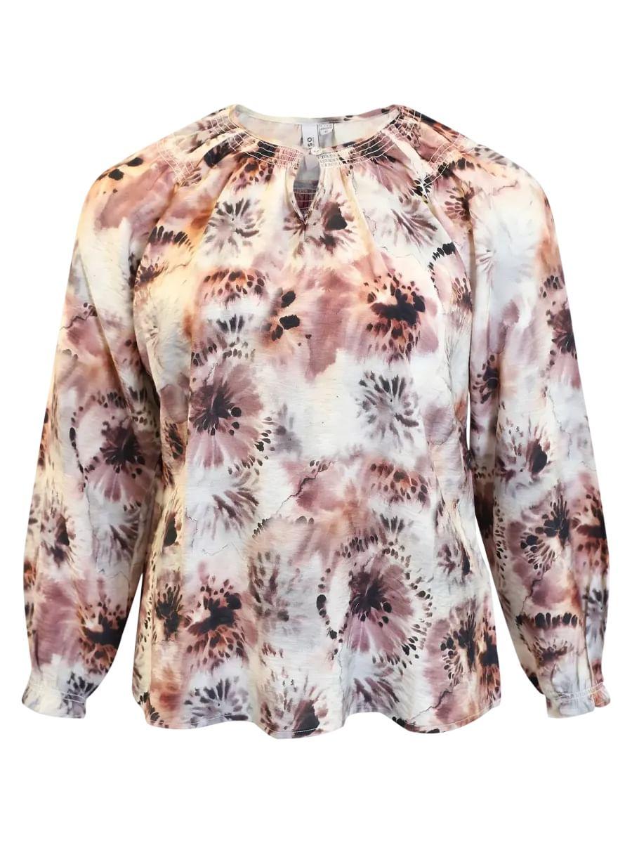 Utrolig fin bluse fra Ciso. Den har lange ermer, A-fasong, og rund hals med vaffelsøm og knapp. Blusen har et nydelig mønster, er utrolig lett og luftig, og passer til enhver anledning.