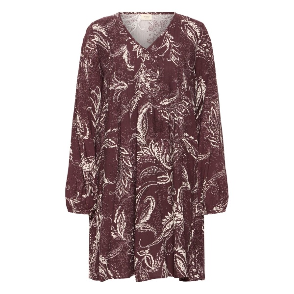 Vakker kjole fra Fransa. Den har A-fasong, V-hals, og lange ermer. Kjolen er lett og luftig å gå i, og passer til alt fra hverdag til fest.