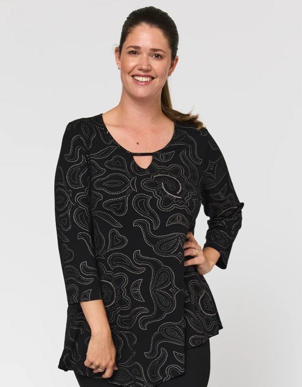 Nydelig topp fra Pont Neuf. Den har 3/4-ermer, rund hals, og A-fasong. Toppen har også et nydelig mønster som gir den et helt unikt uttrykk.