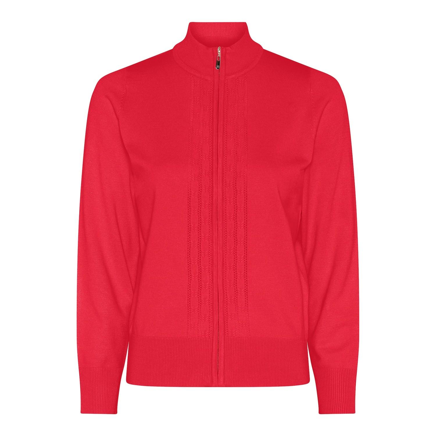 Nydelig genser fra Micha. Den har lange ermer, rett passform, og glidelås hele veien ned foran. Genseren har et mønster som følger glidelåsen ned, og er utrolig myk, stretchy og komfortabel å gå i.