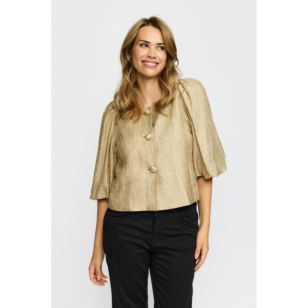 Pen jakke fra 2Biz. Den har 3/4 ballongermer, rund hals, og store knapper. Jakka er lett og deilig å gå i, og passer perfekt til selskaper eller andre festligheter.
